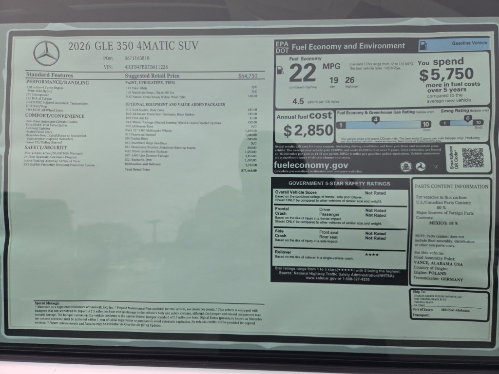 2026 Mercedes-Benz GLE SUV GLE 350