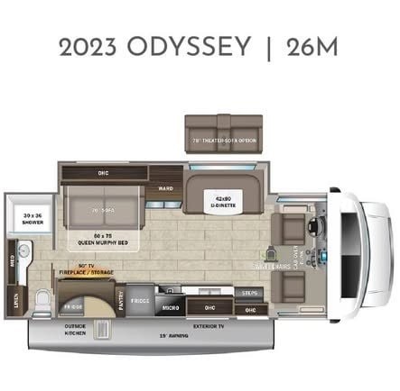 Entegra Coach Odyssey 26m Class C Camper with Outdoor kitchen (refrigerator, grill), Television Shower Gas Generator