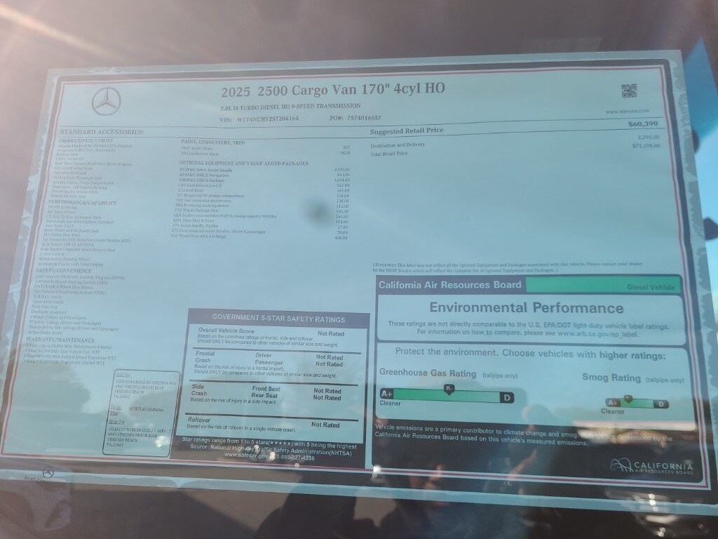 Arctic White 2025 Mercedes-Benz Sprinter 2500 Cargo 170 WB High Roof RWD 9-Speed Automatic 2.0L I4 Diesel Turbocharged High Output